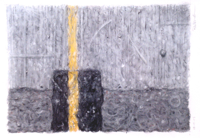 Robert Pasternak first gained attention for meticulously rendered paintings and drawings of urban fragments—cracked asphalt, painted road markings, tar repairs, and weathered signage. Isolated from their larger context, these surfaces initially read as abstract compositions. Only with sustained viewing does the subject become clear. This perceptual shift—between recognition and ambiguity—remains central to his practice and has been a defining element of his exhibitions.