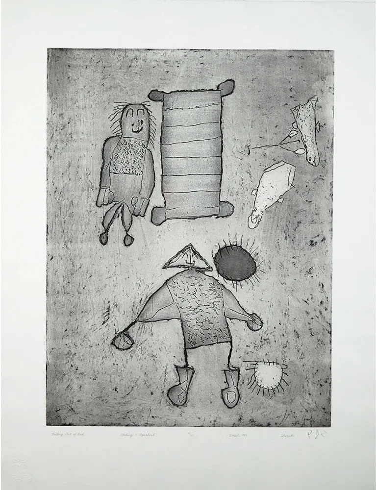 Sheojuk Etidlooie was an Inuit artist from Kinngait (Cape Dorset), Nunavut, whose drawings contributed to the early development of the Cape Dorset graphic arts movement. Working primarily in drawing, she depicted Arctic animals, hunters, and scenes from life on the land, reflecting the experiences of a generation raised in the camp life of the eastern Arctic. Her work is characterized by clear line and direct storytelling, qualities that defined many of the drawings produced in Kinngait during the formative decades of Inuit printmaking. Etidlooie’s images were translated into prints in the annual Cape Dorset collections, and her work remains part of the early history of Inuit graphic art.