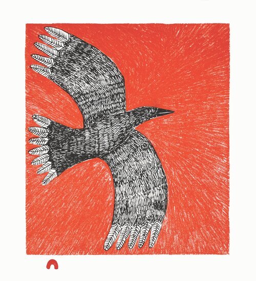 Ningiukulu Teevee (b. 1963) is a leading contemporary Inuit artist from Kinngait (Cape Dorset), Nunavut, internationally recognized for her imaginative drawings and limited-edition prints. Working with fluid line, layered colour, and dreamlike narrative, Teevee depicts animals, human figures, and fantastical environments that move between the real and the imagined. Her work has been widely exhibited and collected by major institutions, and she has been a frequent contributor to Kinngait Studios annual print collections. Teevee’s distinctive visual language and inventive storytelling have made her one of the most influential figures in contemporary Inuit art.