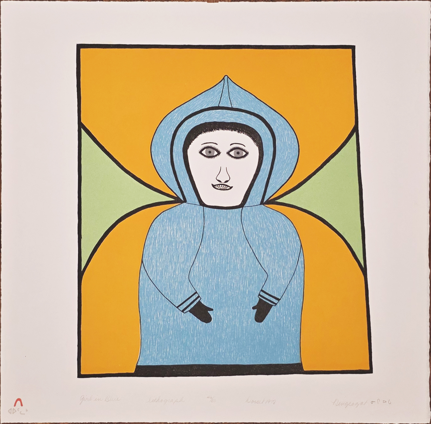 Her work was included in numerous annual print collections and helped establish Baker Lake as a significant centre for Inuit printmaking. Today, Ningeeuga Oshuitoq’s work is celebrated for its bold aesthetic clarity, inventive colour, and enduring originality.