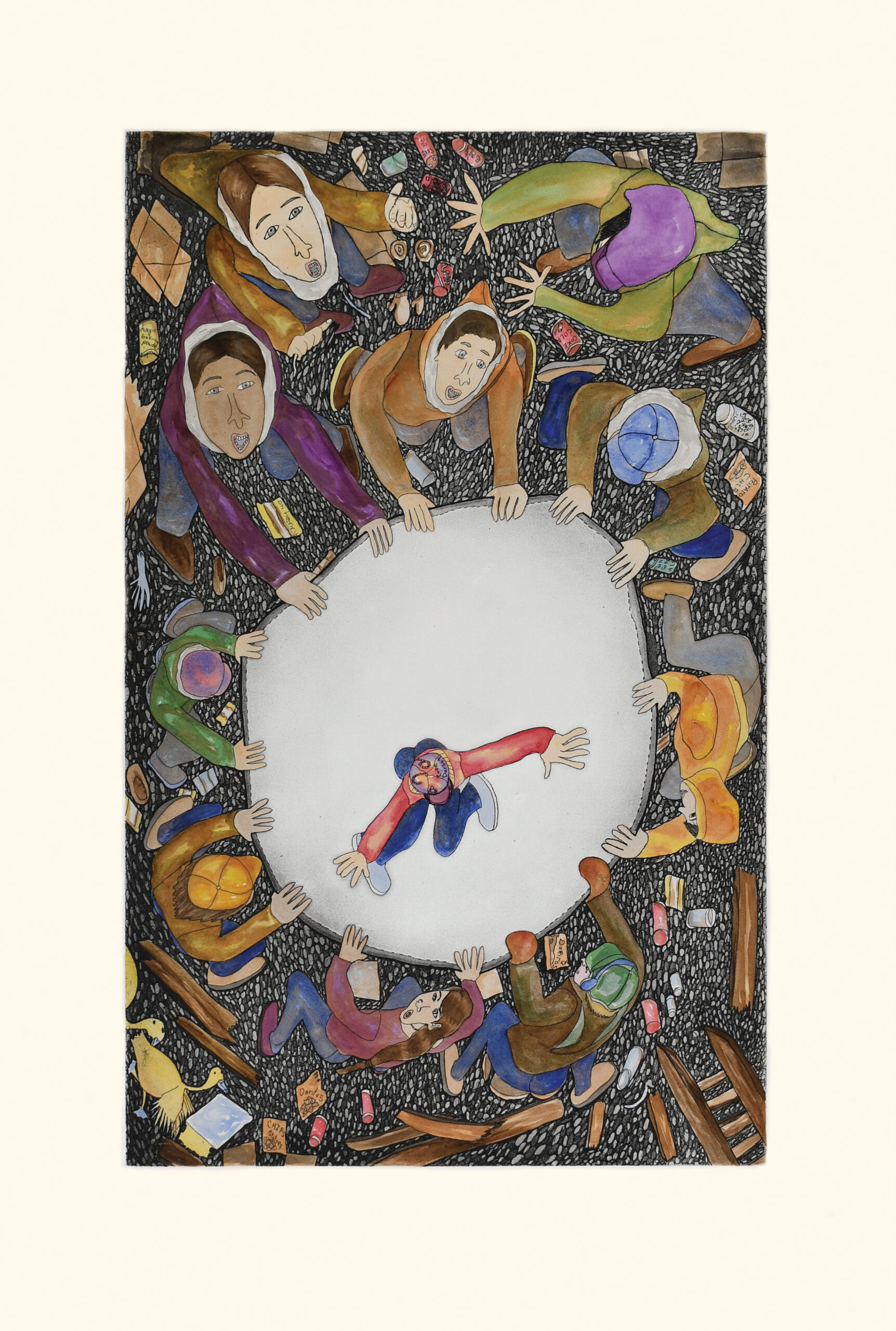 Shuvinai Ashoona (b. 1961) is one of the most influential contemporary Inuit artists working today. Based in Kinngait (Cape Dorset), Nunavut, she is known for an expansive and inventive practice that moves fluidly between detailed realism, imagined worlds, and cosmological landscapes. Her drawings and prints explore Inuit life, transformation, and interconnected worlds with remarkable clarity and originality. Ashoona has been widely exhibited internationally and in 2018 received the Governor General’s Award in Visual and Media Arts, one of Canada’s highest artistic honours. Her work is held in major museum collections and she is widely regarded as one of the great figures in the history of Inuit art.