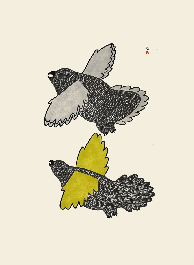 Piseolak Ashoona was an Inuit artist from Kinngait (Cape Dorset), Nunavut, and one of the most important early figures in the development of Inuit graphic art. She began drawing in the late 1950s after settling in Kinngait, creating detailed and expressive images that documented traditional Inuit life, including hunting, camp scenes, and seasonal activities. Her work provided a vital visual record of life on the land during a period of rapid cultural transition. Many of her drawings were translated into prints in the early Cape Dorset annual print collections, helping to establish the foundation of the community’s internationally recognized printmaking tradition. Today, her work is widely held in major museum and private collections and is regarded as central to the history of Inuit art.