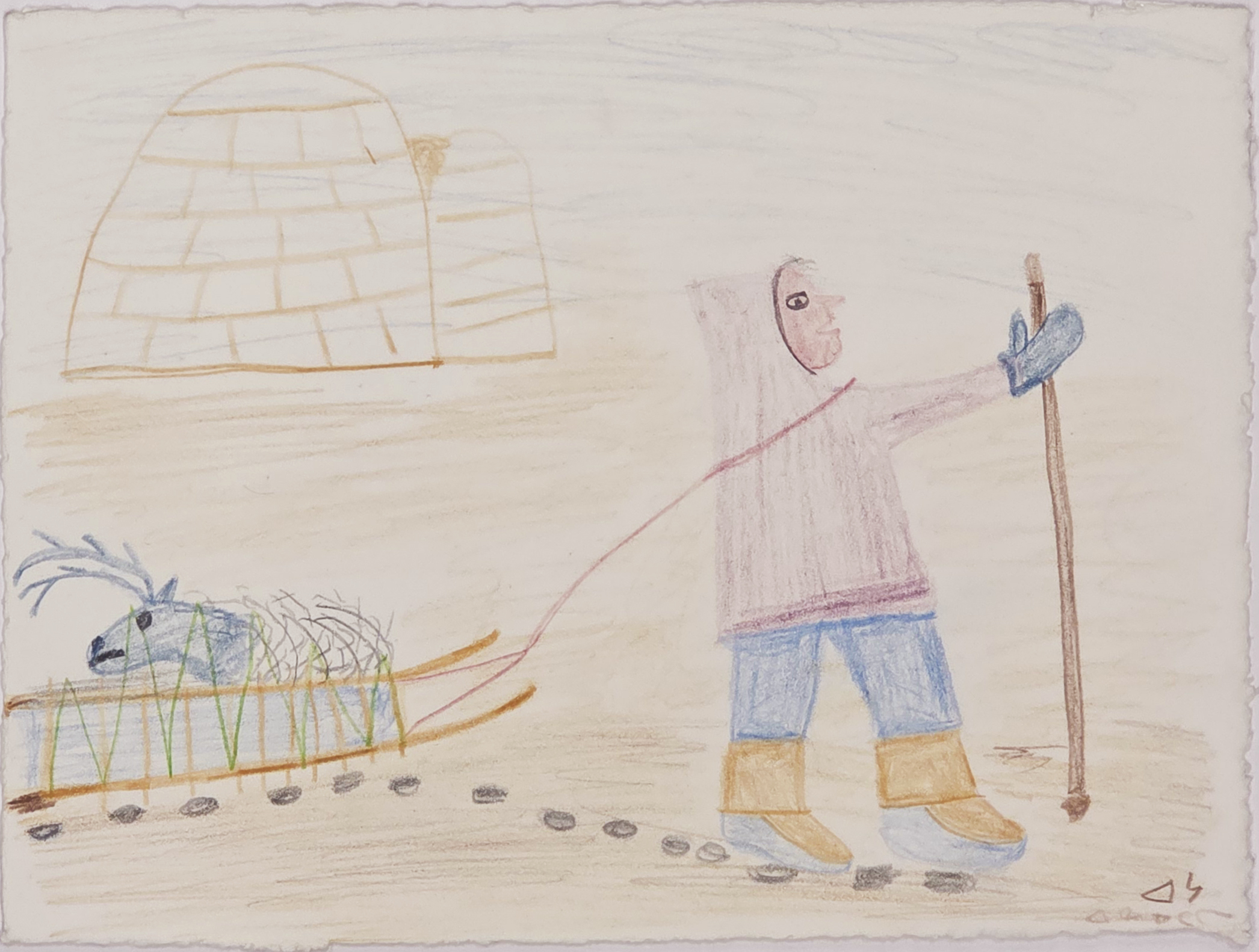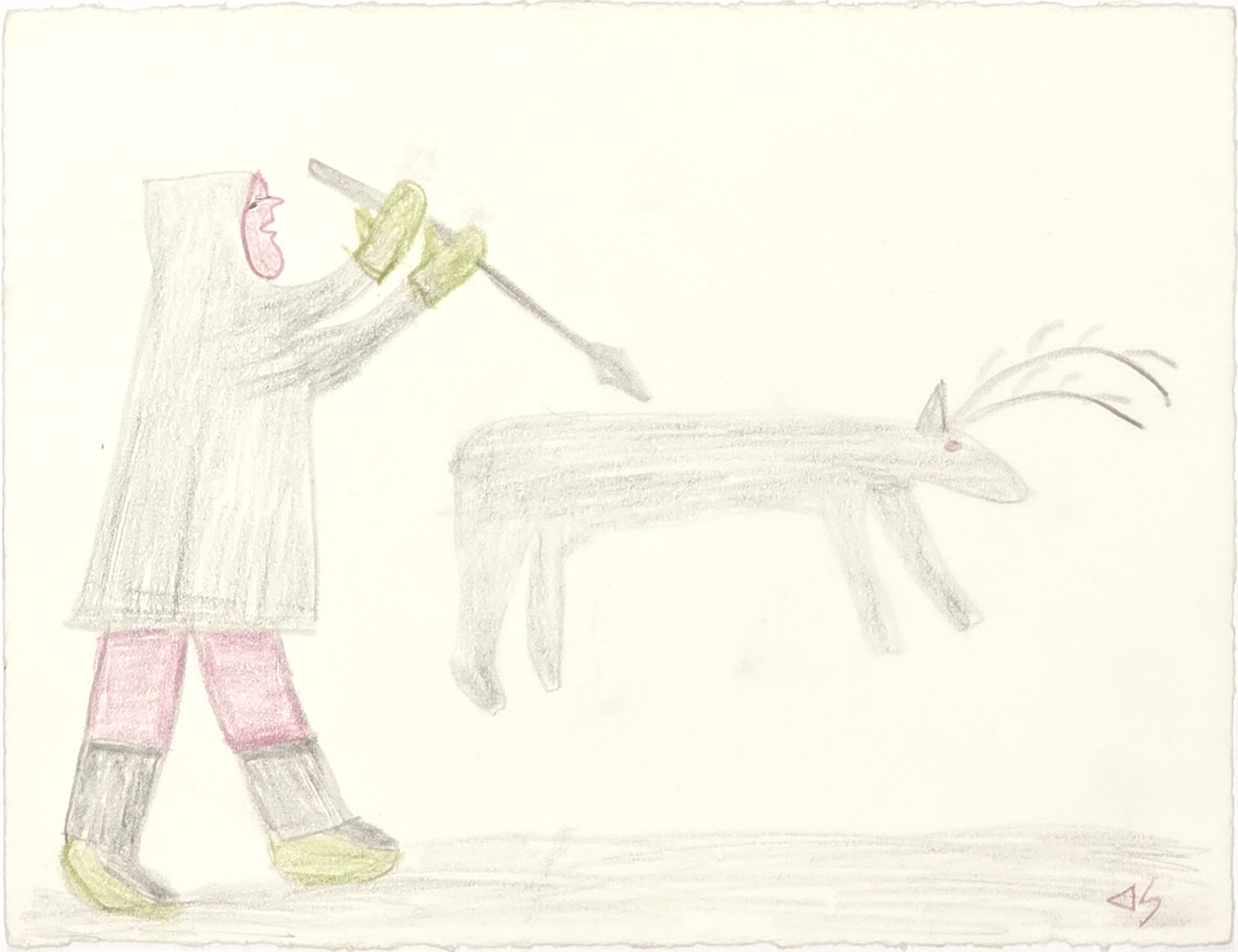 Mary Ayaq Anowtalik was an Inuit artist from Baker Lake (Qamani’tuaq), Nunavut, associated with the community’s distinctive drawing and printmaking tradition. Her work often depicts animals, figures, and scenes from life on the land, rendered with a strong sense of design and clarity of form. Like many Baker Lake artists, Anowtalik developed a highly individual approach to composition, frequently organizing figures in rhythmic arrangements across the picture plane. Her drawings were translated into prints through the Baker Lake annual collections, where her work contributed to the development of a bold and graphic regional style. Today, her prints are collected for their balance of narrative content and formal structure within the Baker Lake tradition.