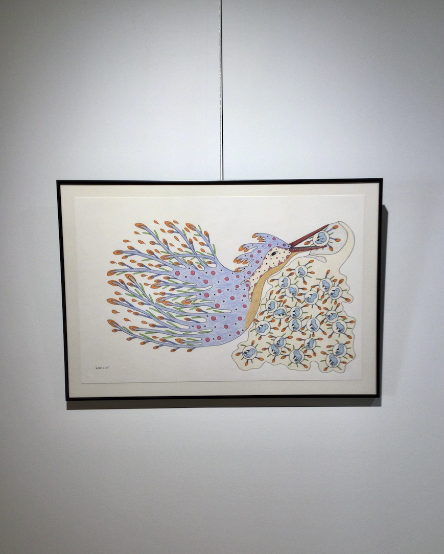 While some of his works depict animals and scenes from northern life with fine line and pattern, others explore transformation imagery, combining human, animal, and spirit forms in layered, often large-scale compositions. These more expansive works demonstrate a distinctive approach within the Kinngait drawing tradition, where observation and imagination intersect.
