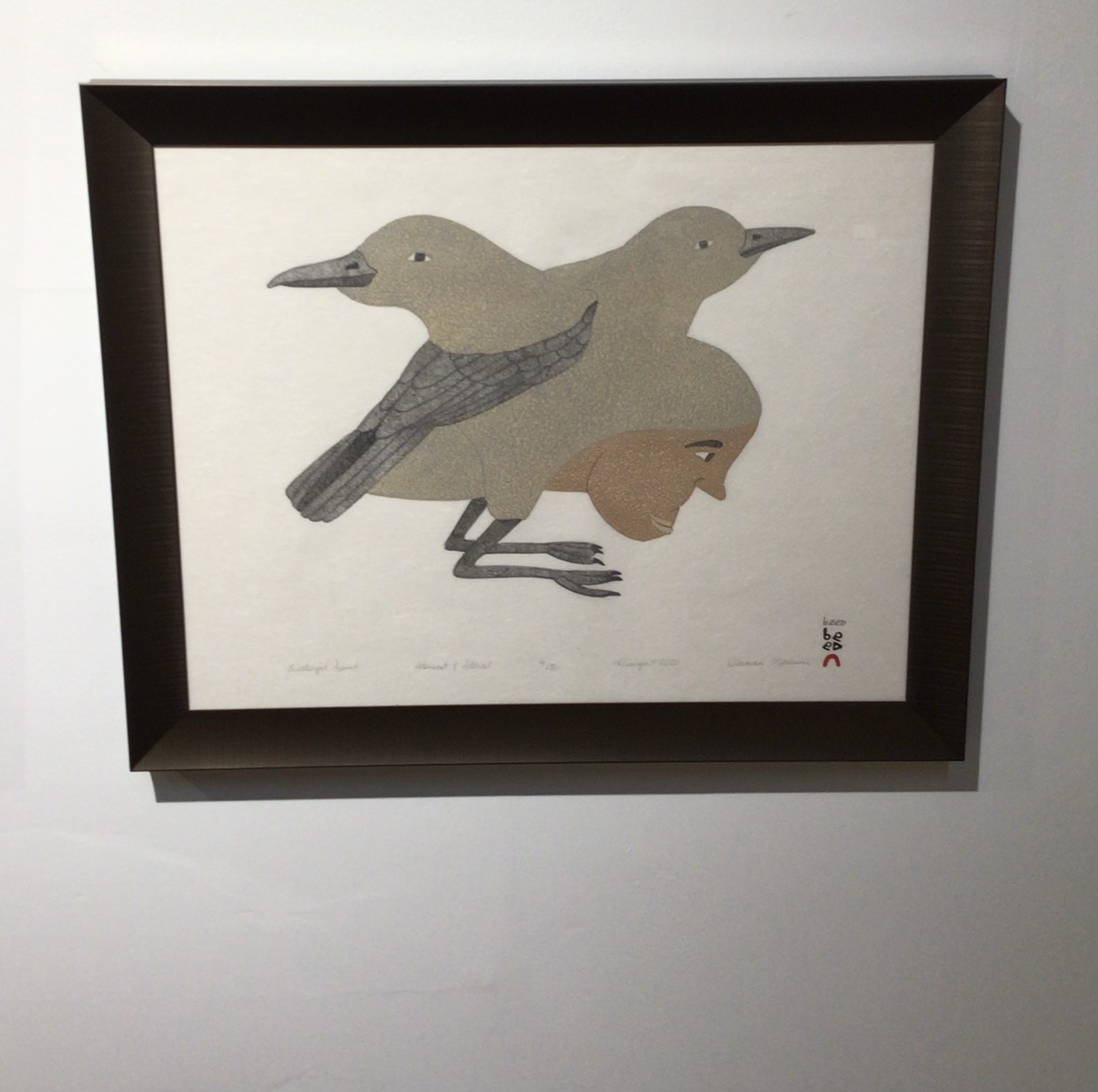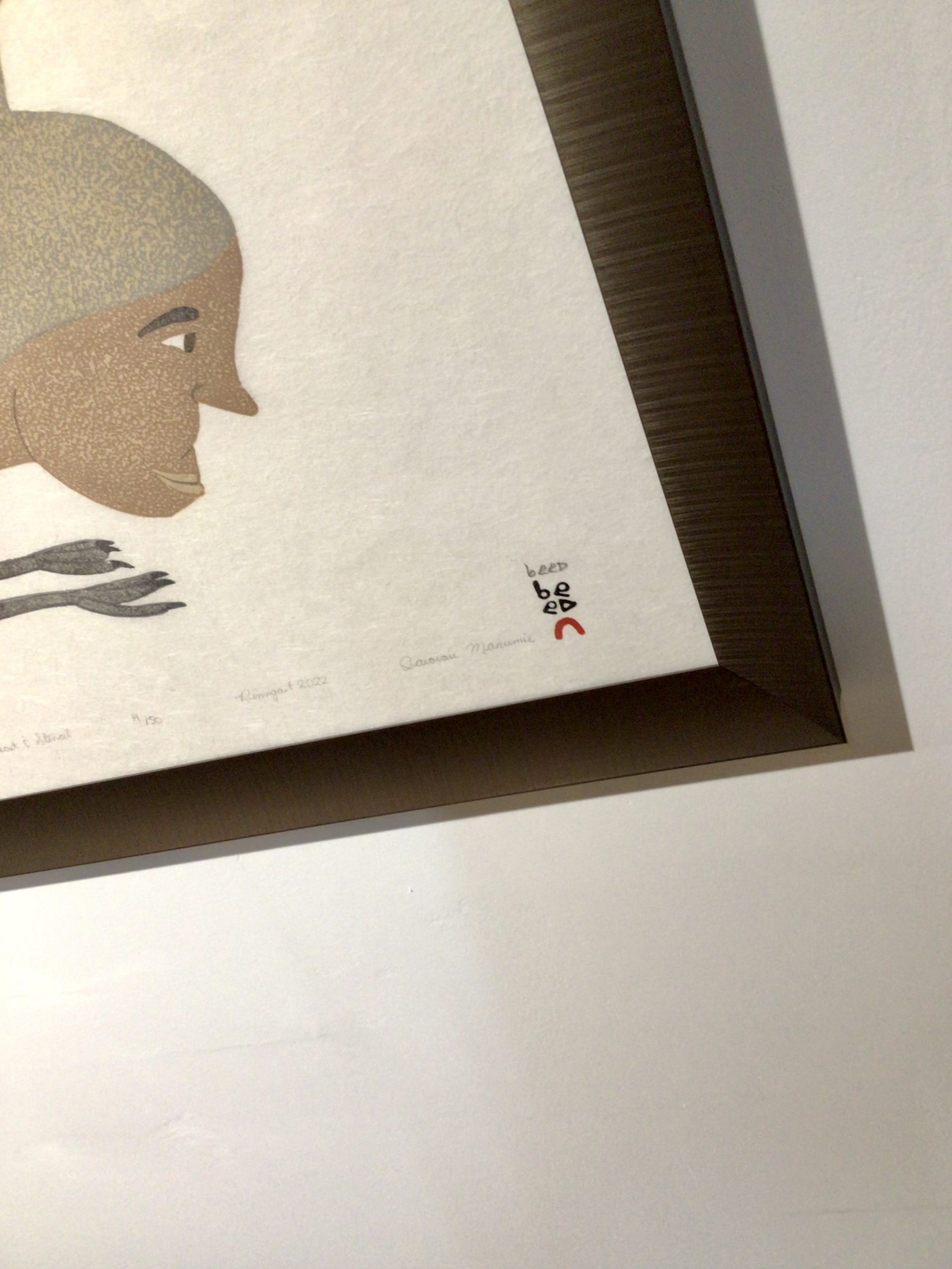 While some of his works depict animals and scenes from northern life with fine line and pattern, others explore transformation imagery, combining human, animal, and spirit forms in layered, often large-scale compositions. These more expansive works demonstrate a distinctive approach within the Kinngait drawing tradition, where observation and imagination intersect.